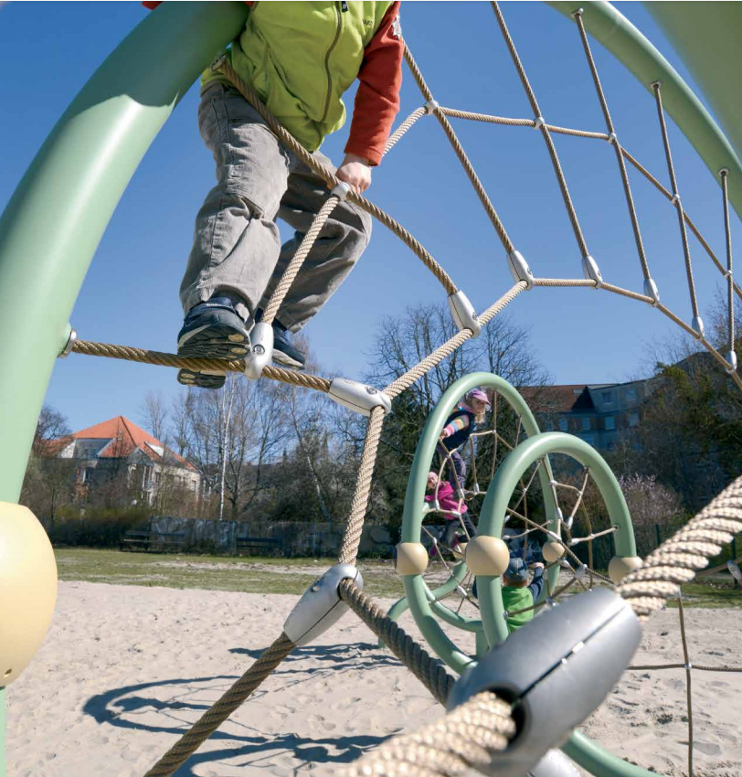 6-8歲的孩子喜歡在攀爬網和大型戶外滑梯一類的,能喚起喚起身體內的運動天賦。